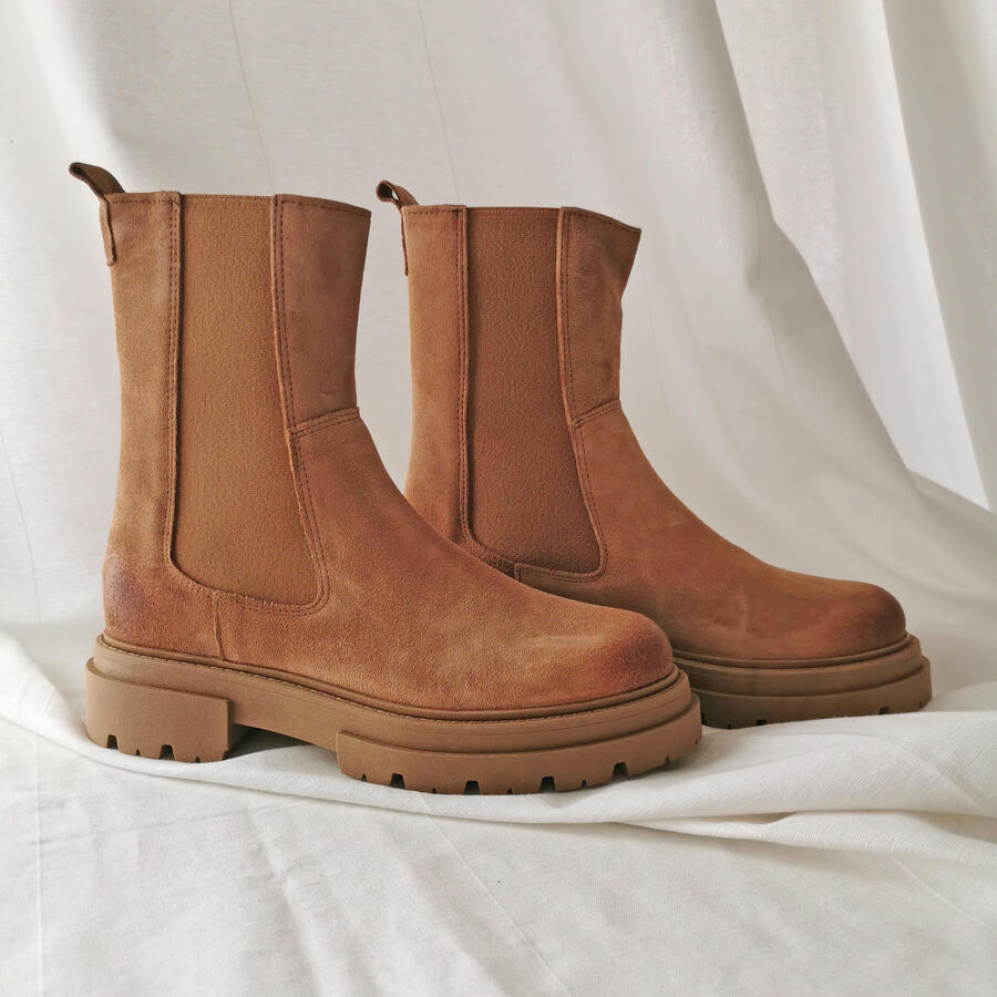 Stivale con suola platform ed elastici laterali in pelle scamosciata